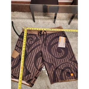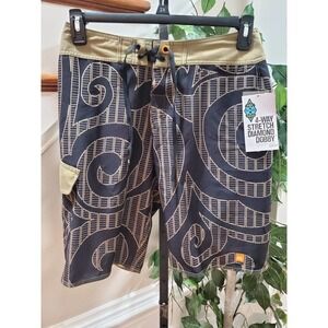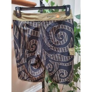 Quicksilver Men Beige & Black Polyester Pull On Stretch Swimwear Shorts Size 32