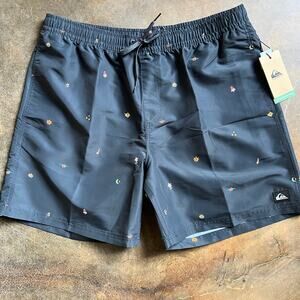 Quicksilver Men's Black Swim Suit Shorts Size XL 7" Inseam NWT