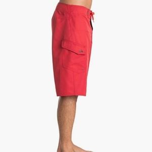 Red, Front Tie, Cargo Pockets, Manic 22" Length, Polyester, Boardshort Swim Trunks, Like New, In Excellent Condition and Ready for Some Fun! Looking Good Guys 👍