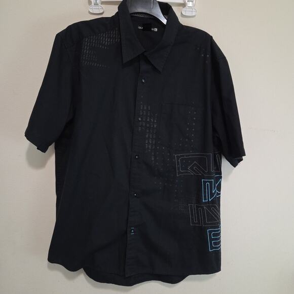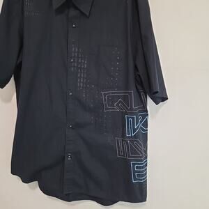 Quicksilver Men’s Quick Silver Print Pattern Navy Blue Short Sleeve Shirt - LG
