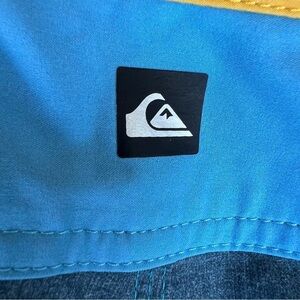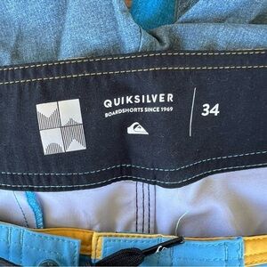 Quicksilver New Wave Everyday Boardshorts Blue Yellow 10” Inseam Size 34 GUC