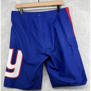 Quicksilver New York Giant Board Shorts Mens Sz 34 Logo Blue Unlined Drawstring