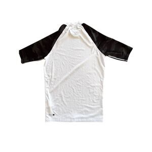 Quiksilver Color Block Short Sleeve Rash Guard Dark Grey Sleeves White Body Men's Medium
