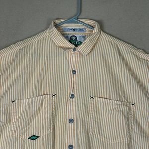 Quicksilver Salt-Water Denim Shirt Adult Extra Large Yellow Striped Short Sleeve Preppy Men's