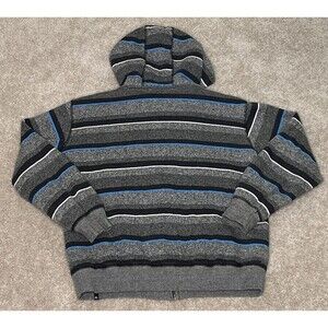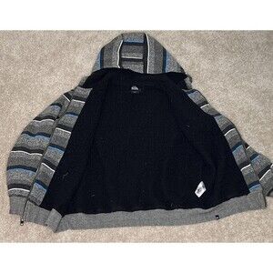 Quicksilver Sherpa Lined Youth Full Zip Gray Striped Hoodie Jacket Youth Medium