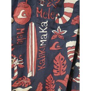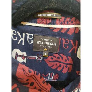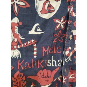 Quicksilver Waterman Shirt Hawaiian Christmas Mens Button Front Short Sleeve L