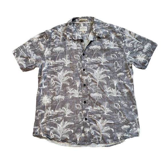 Quicksilver Waterman XL Palm Tree Button Up Collared Shirt Grey White Tropical