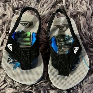 Quicksilver black and blue flip flops for boys.