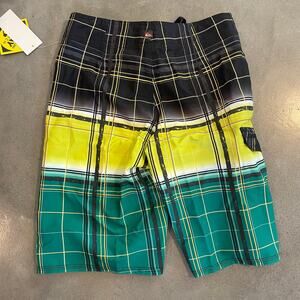 Quicksilver black yellow green swim trunks board shorts boys 26 NEW Jamaica