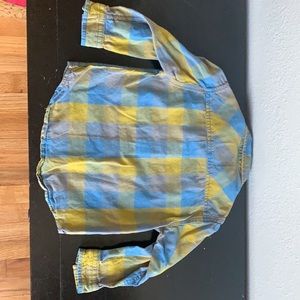 Mustard and blue check plaid button down shirt. Size 2T. Excellent condition. Smoke free home