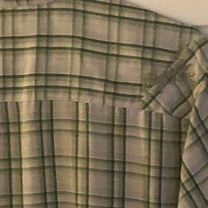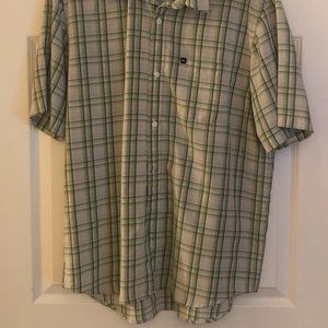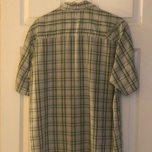 Quicksilver men's green/white plaid button up preowned short sleeve shirt-Size L
