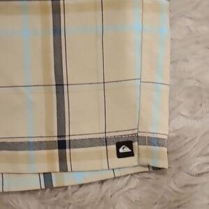 Quicksilver mens tan, black and light blue plaid polyester shorts size 28