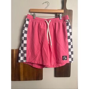 Quicksilver pink checkerboard Drawswing Lined Stretch Elastic Waist Swim Trunks Size Medium