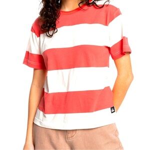 The Quiksilver Womens Wave Vibes T-shirt wide stripes. A lightweight cotton fabric.