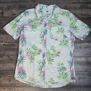 Quicksilver Regular Fit Hawaiian shirt Size Medium Cotton White Green Blue