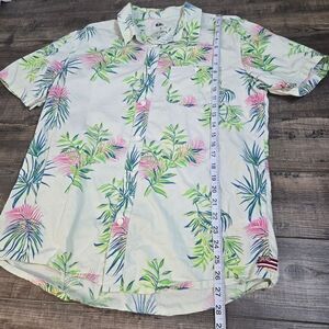 Step into a tropical paradise without leaving your living room! This Quicksilver Regular Fit Hawaiian shirt in size Medium transforms any ordinary day into a sun-soaked getaway. Crafted from cotton, it features a delightful symphony of white, green, pink, and blue hues, adorned with vibrant botanical prints that scream "beach day!" Whether you're sipping a coconut drink or just dreaming of sandy shores, this shirt ensures you look effortlessly stylish. Perfect for barbecues, beach parties, or simply lounging in your backyard, its the ultimate wardrobe essential for those who dare to embrace the laid-back vibe of island life.