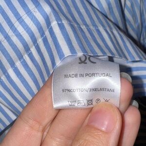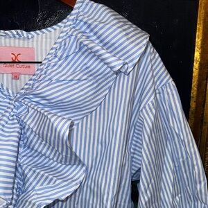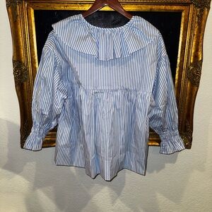 Quiet Culture Lady Bird 100% Cotton Blue White Striped Ruffled Puff Sleeve Top XS. Does not come with pants.