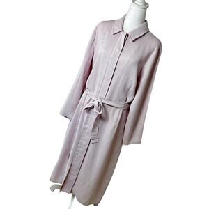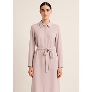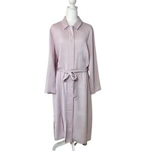 Alfani Quiet Luxury Women's XL Lilac Purple Button-Front Collared Midi Shirtdress Dress with Pockets & Belted Waist, Hidden Buttons, Long Sleeve. Versatile Day Dress. The midi length gives it a sophisticated silhouette that can be dressed up with heels or worn casually with flats.