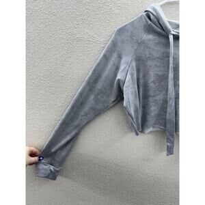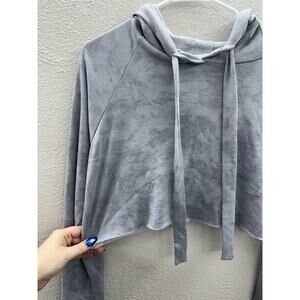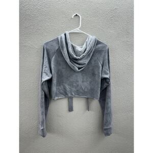 Quiet Storm Womens Sweatshirt Size Medium Gray Tye-Dye Pullover Hooded Cropped