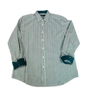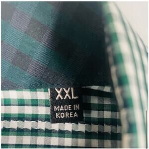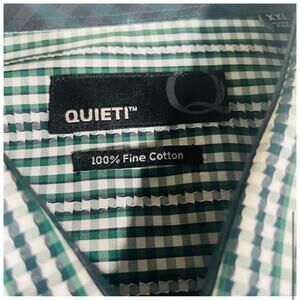 Quieti Mens Button Down Plaid Shirt Size XXL Fine Cotton Long Sleeve Green White