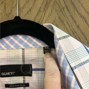 Quieti men's long sleeve pink and blue plaid shirt size XXL