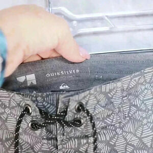 QuikSilver Boardshort Size 34 grey/graphic pattern w/front pockets and back velc