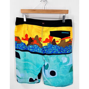 Quiksilver Abstract Multicolor Beach Scene Casual Board Shorts Men's Size 34