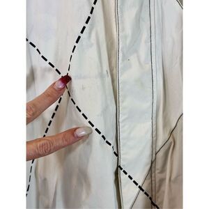 Great condition; there is a spot on the front of the left shoulder, on the left sleeve and a couple spots on the chest near the zipper, as photographed