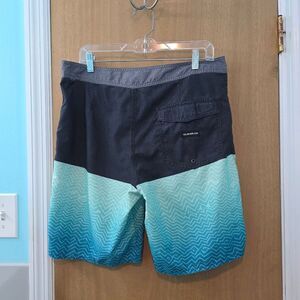 Quiksilver Blue and Gray Board Shorts Wave Design Mens M