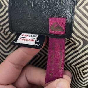 This Quiksilver Brown Quiktech 5,000 MM Ski Snowboard Jacket in size Large is designed to keep you warm and dry on the slopes. Featuring a waterproof rating of 5,000 mm, it offers reliable protection against snow and moisture, while the insulated lining provides cozy warmth. With adjustable cuffs, a hood, and multiple pockets, this jacket combines functionality with classic Quiksilver style for all your winter adventures.