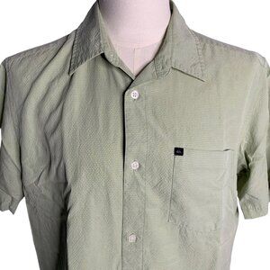 Quiksilver Button Up Camp Shirt S Green Checkered Short Sleeve Pocket Collar