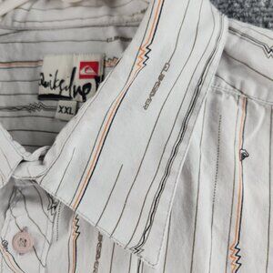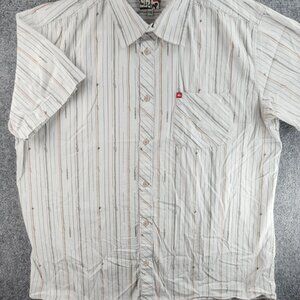 Quiksilver Button Up Shirt Men Short Sleeve 2XL Striped Surf All Cotton Casual