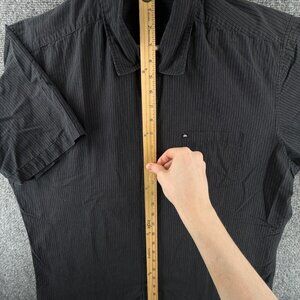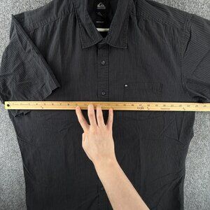 Quiksilver Button Up Shirt Regular Short Sleeve Striped Pocket Dark Blue Navy XL