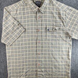 Quiksilver Button Up Shirt Short Sleeve Men Surf Outdoors Green Plaid XL Woven