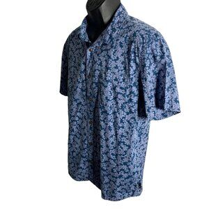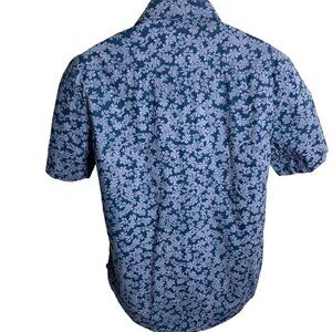 Quiksilver Button Up Short Sleeve Shirt M Blue Floral Cotton Chest Pocket