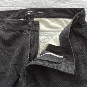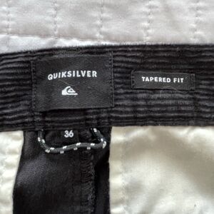 Quiksilver, corduroy pants, trousers, mens cords, tapered fit pants, corduroy, surf skate fashion, casual corduroys, streetwear pants, Y2K, y2k fashion, surf, skater, indie, grunge, punk, retro, casual basics, capsule wardrobe, normcore, blokecore, surf skate fashion, mens corduroy pants, black corduroy trousers, tapered fit pants, retro skate style, 90s revival, casual surf brand pants, streetwear pants, quiet vintage, dark academia style, Quiksilver size 36, mens casual corduroy