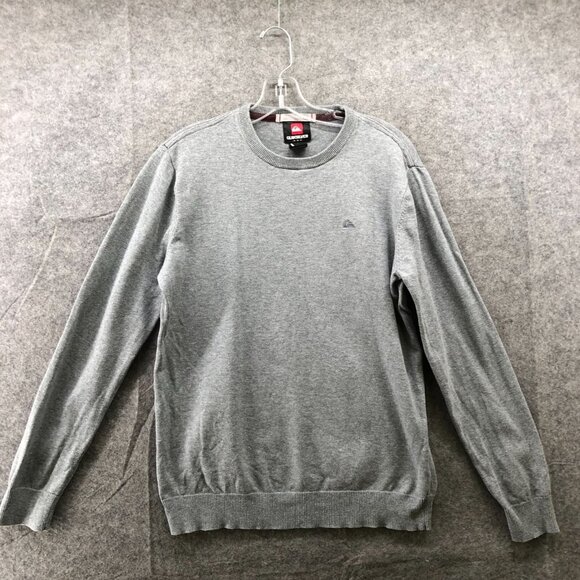 Quiksilver Long-Sleeve Pullover Sweater Mens M Gray Embroidered Logo 100% Cotton