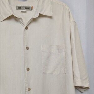 Quiksilver Edition Shirt Mens 2XL Beige Silk Cotton Comfort Fit Tiki Hawaiian