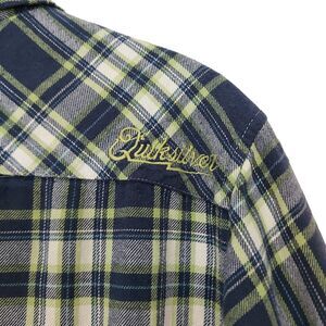 Quiksilver Flannel Shirt Mens Medium Green Blue Plaid Button Up Preppy Cotton