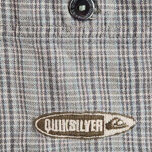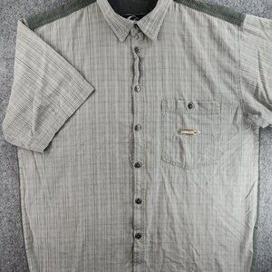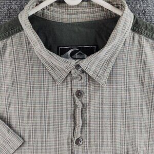 Quiksilver Green Plaid Large Men Button Up Short Sleeve Corduroy Trim Pocket