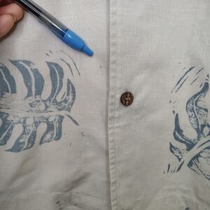 Quiksilver Hawaiian Shirt Mens Large White Button Up Leaf Print Silk Vintage