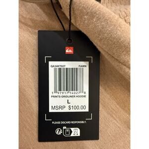 Quiksilver Hoodie Mens LG Fawn Tan Prints Gridliner Pullover Logo QA34KT027 NWT