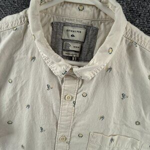 Quiksilver Medium Cotton Graphic Print Short Sleeve White Skate Shirt Mens Adult