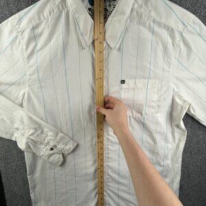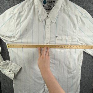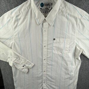 Quiksilver Men Long Sleeve Button Up Shirt White Blue Striped XL Polycotton