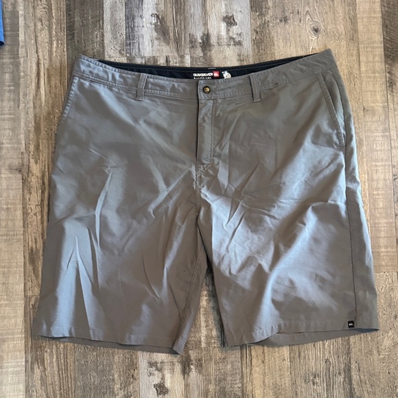 Sleek charcoal shorts. Ideal for casual outings. Classic flat front design.