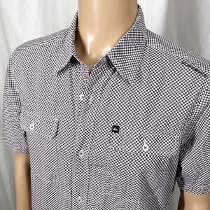 Quiksilver Men's Medium Purple White Mini Checkered Short Sleeve Button-Up Shirt