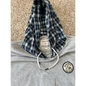 Quiksilver Mens Sweatshirt, size Large, Thermal Hooded Gray w/ Plaid hood