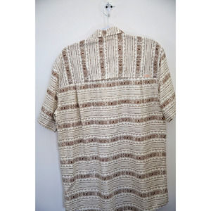 This Quiksilver Men's WATERMAN COMFORT FIT shirt is a must-have for any stylish man's wardrobe. With its collared neckline, short sleeves, and button-down closure, it's perfect for any casual occasion. The shirt comes in a beautiful beige color with a floral pattern, making it a great addition to your summer collection. The shirt is made from a woven fabric type and has a regular fit. It's available in XL size and is part of the Quiksilver Waterman product line. The shirt's style is a button-down, perfect for those who want a sporty and casual look. The shirt's theme is a combination of sport, palm, fish, and aloha, making it suitable for any outdoor activity.