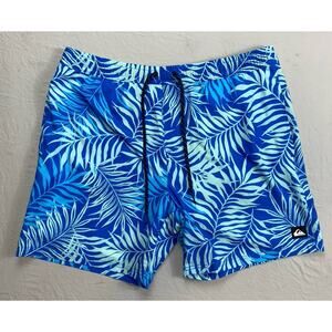 Quiksilver Mesh Lined Pull On Elastic Waist Swim Shorts, Trunks. Blue Floral, XL