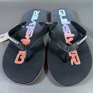 Quiksilver Molokai Flip Flops Mens Size 12 Thong Sandals Black Colorful Script